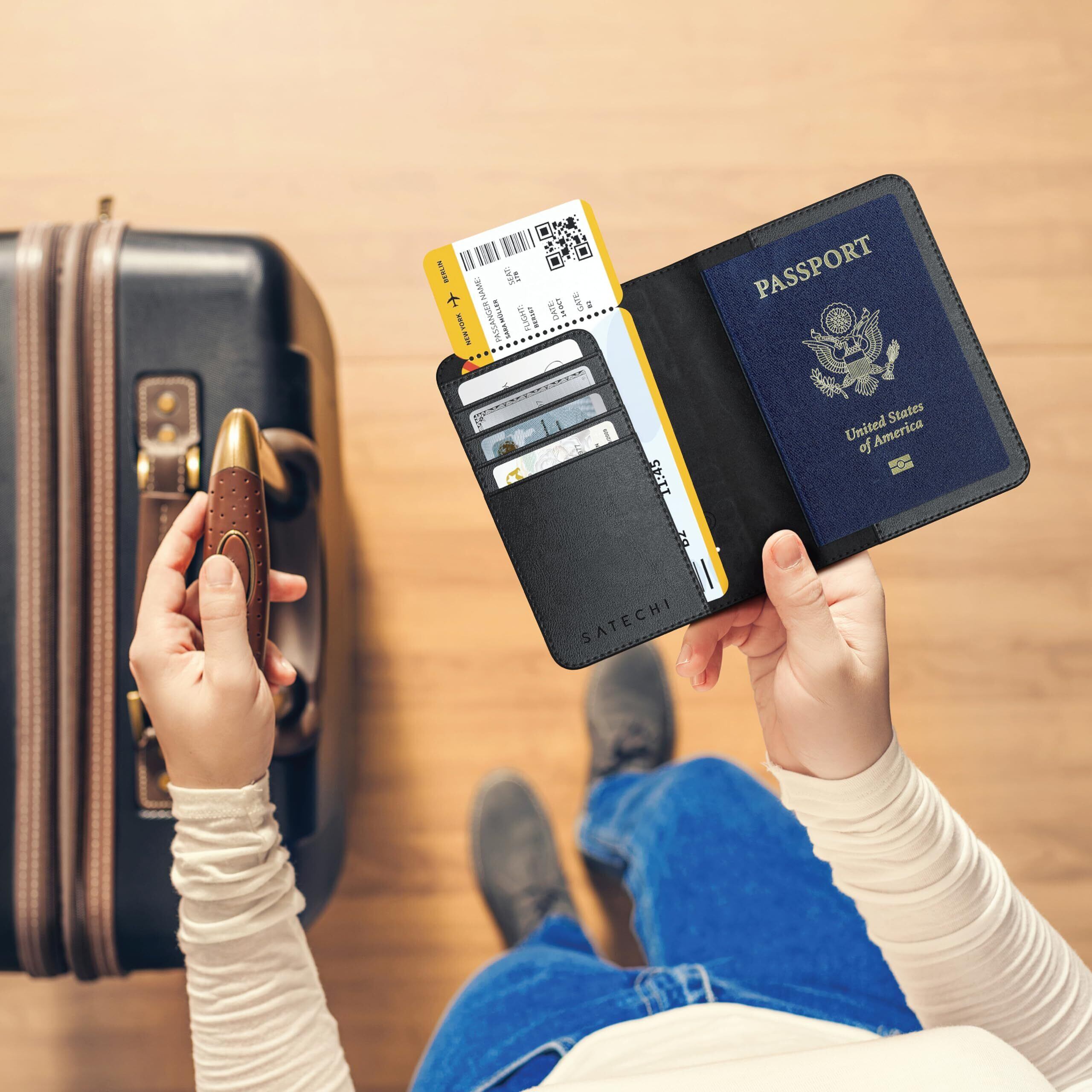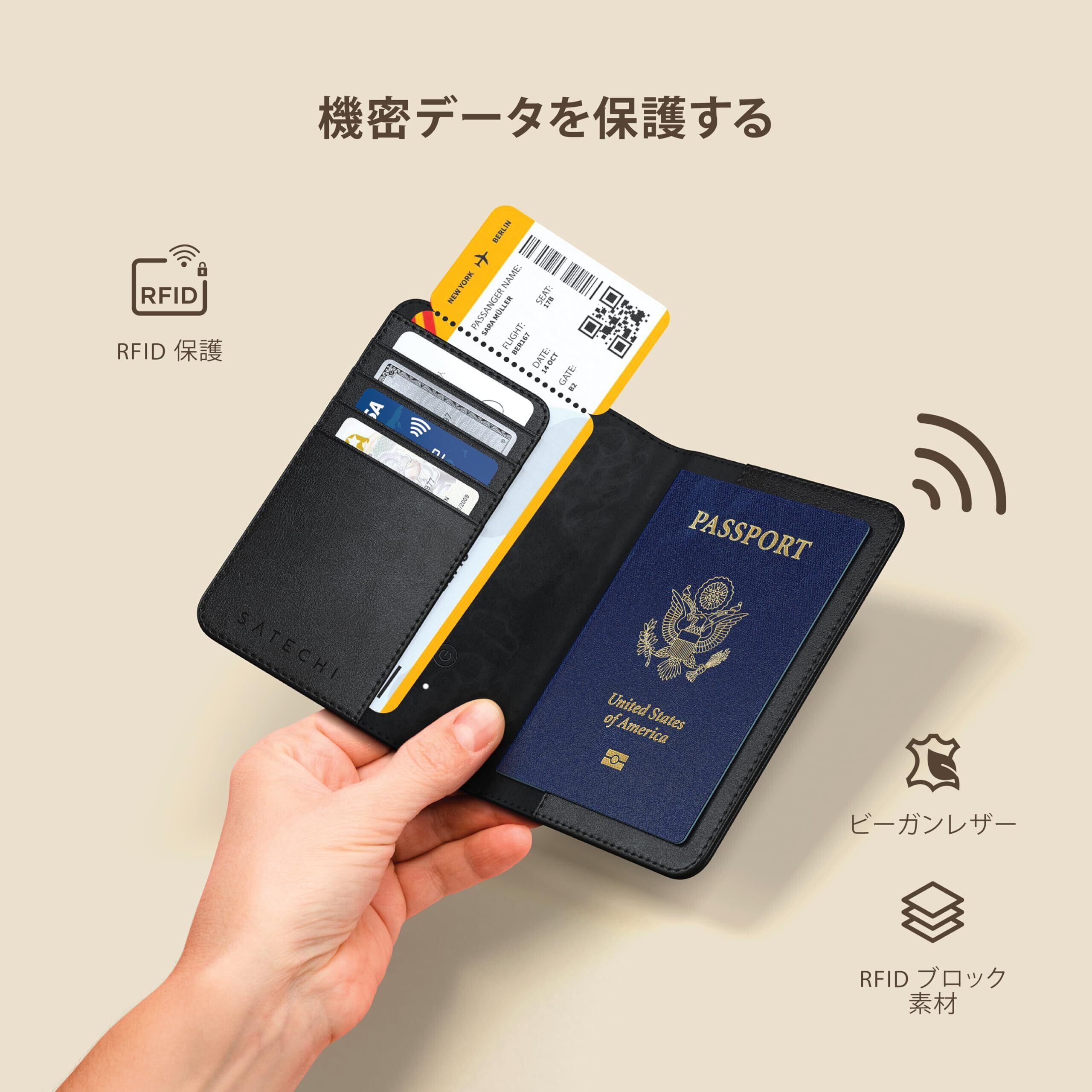 ヴィーガンレザー パスポートカバー カード4枚収納可 ワイヤレス充電対応 RFID保護
